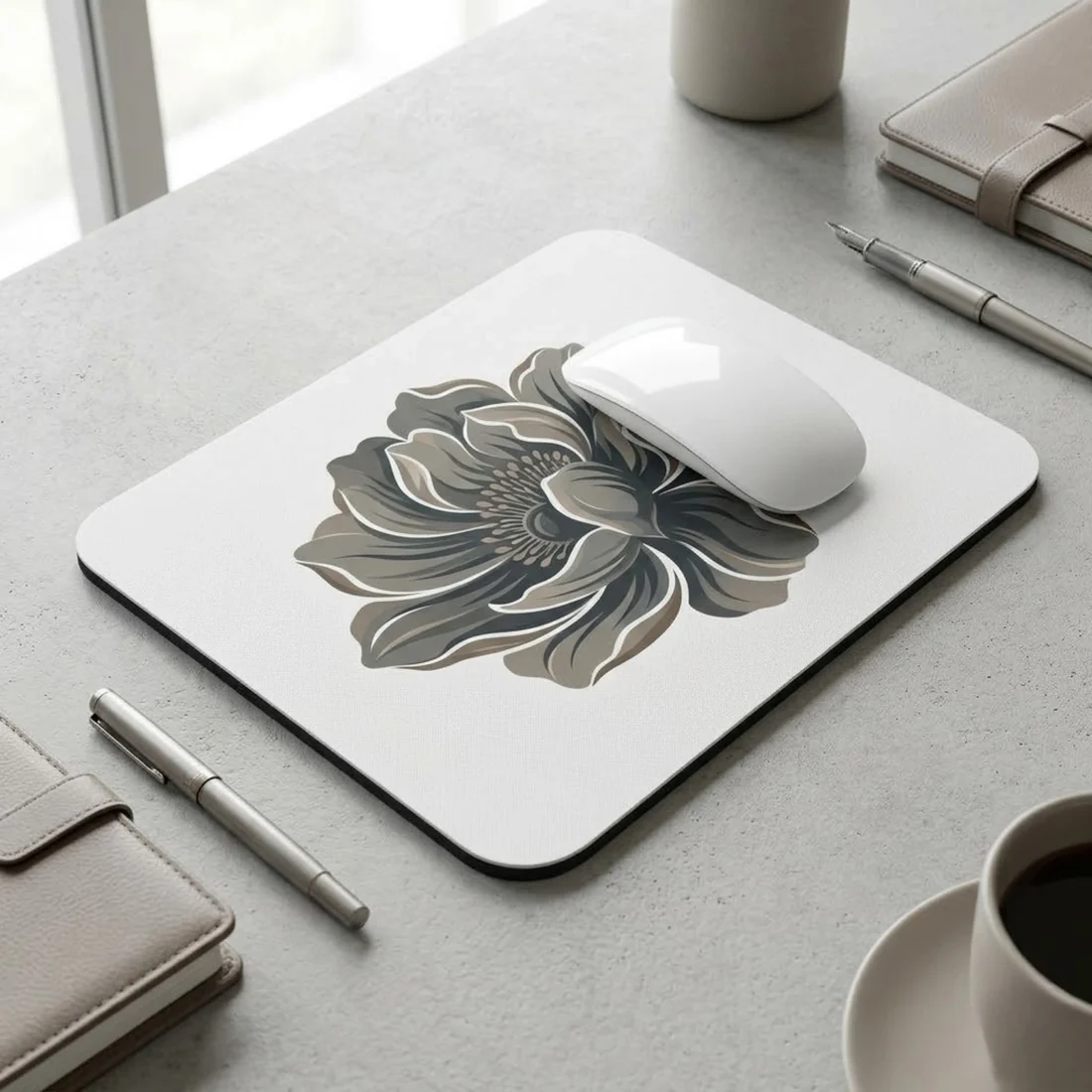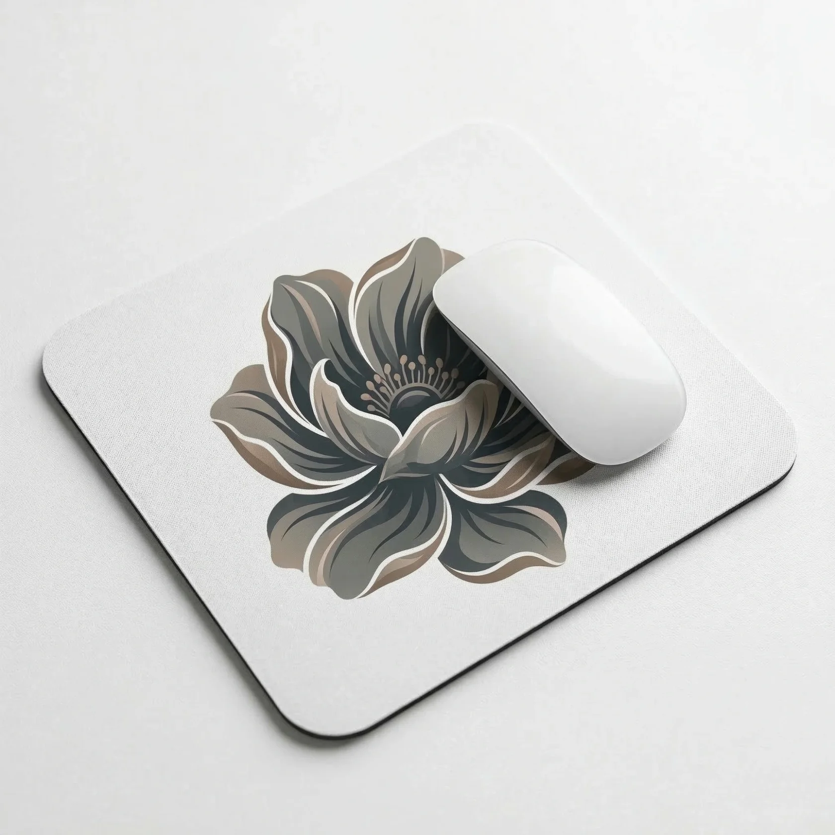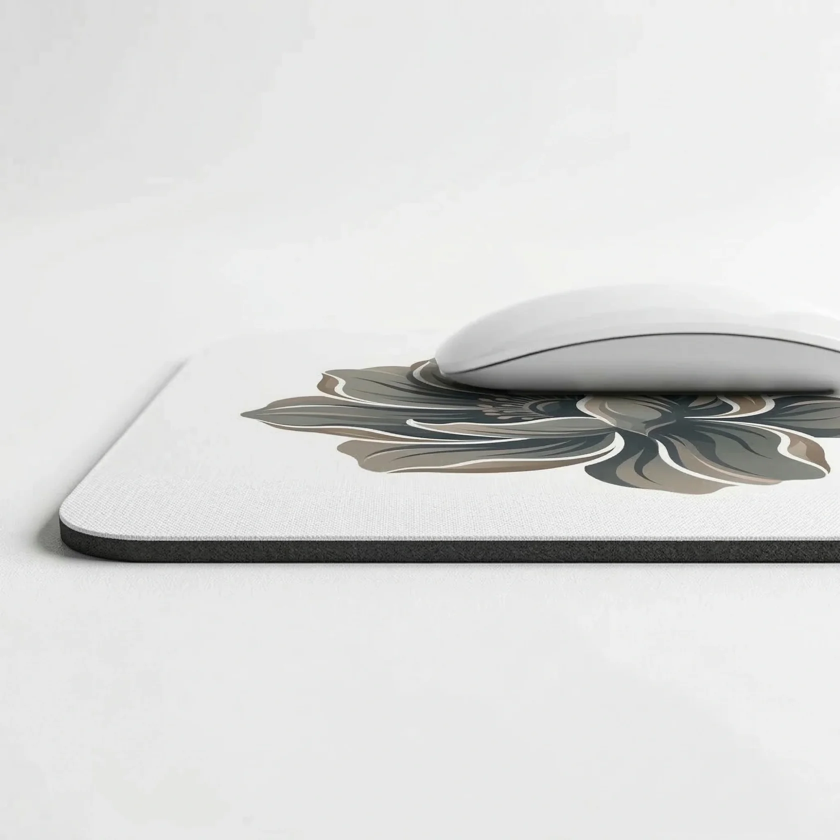 Bring a touch of nature and elegance to your workspace with the Padura Minimalist Floral Mouse Pad. Designed for a clean, sophisticated aesthetic, this desk pad features a beautifully oversized, stylized flower rendered in muted grey and earthy brown tones against a bright white background. Crafted with a premium textured micro-woven surface, it provides enhanced tactile feedback and precise tracking for both optical and laser mice.