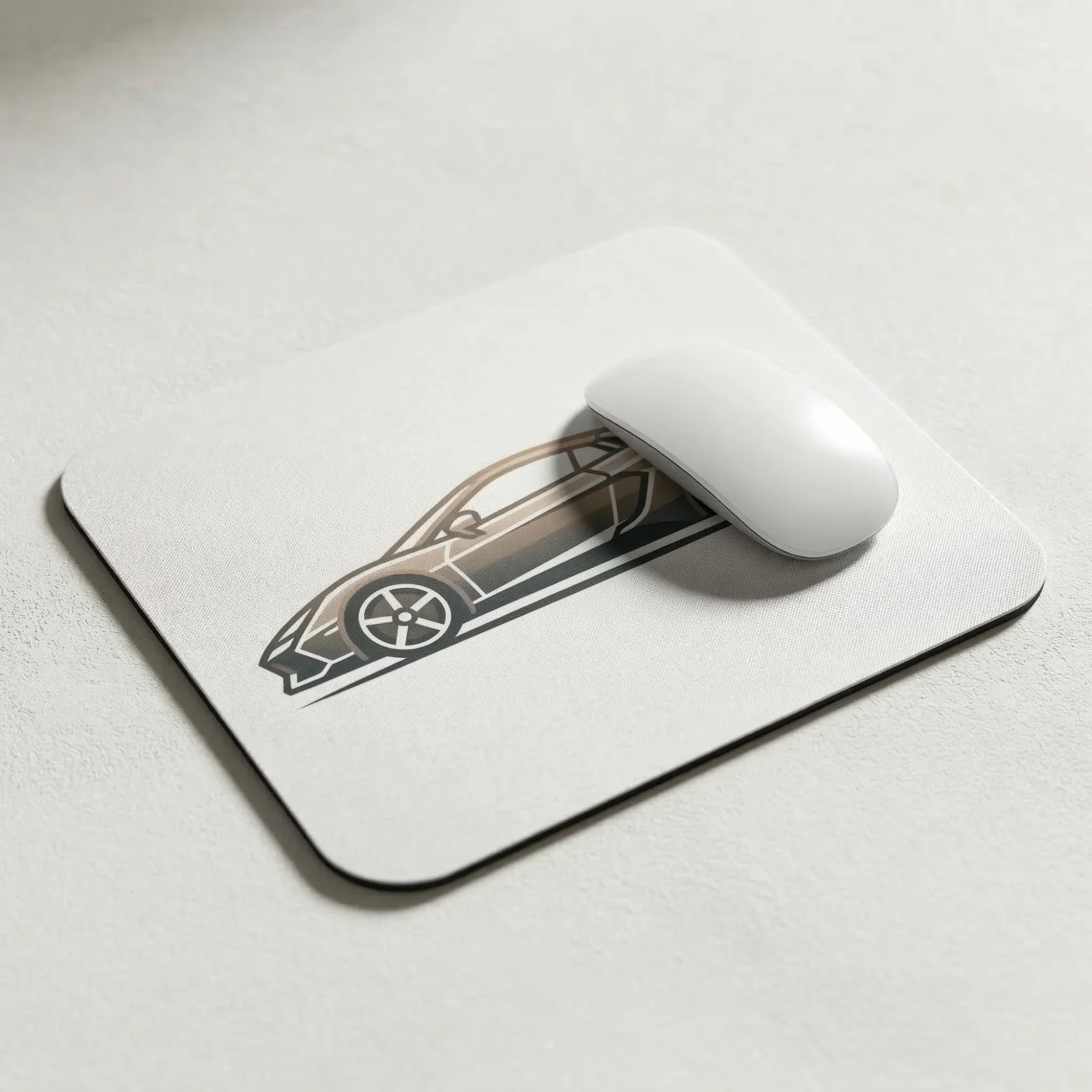 Automotive Art: Features a sleek, minimalist sports car design that adds a subtle touch of speed and elegance to your setup.